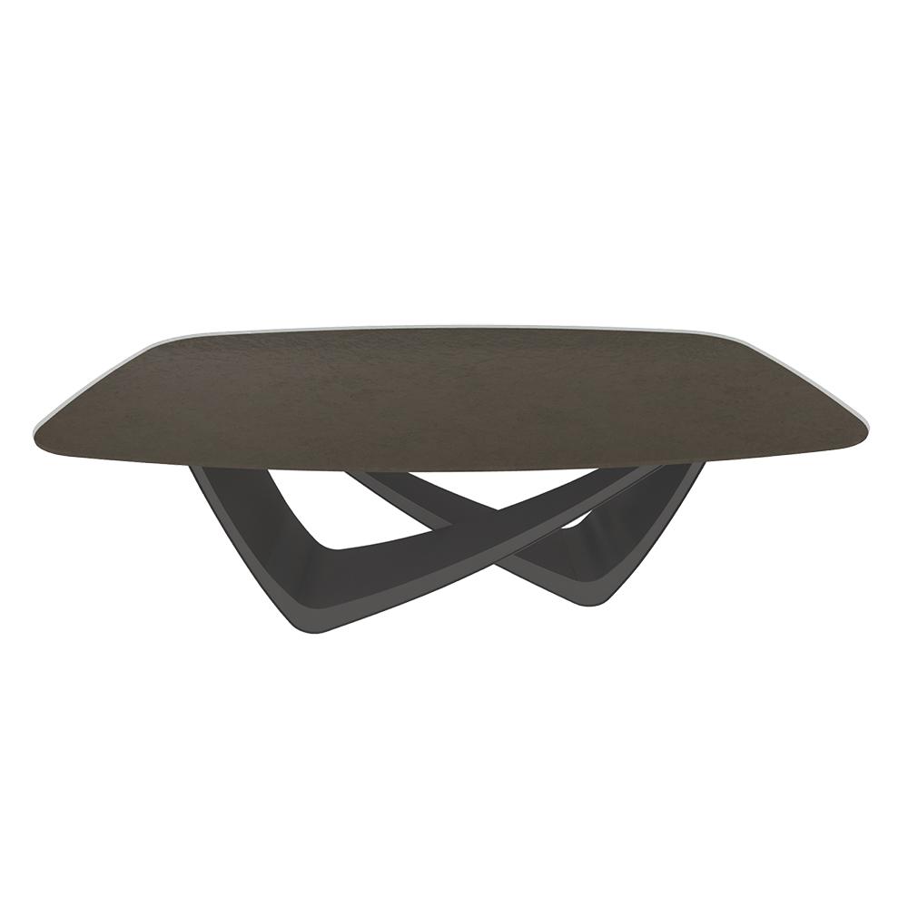 BONTEMPI table fixe tonneau avec structure anthracite BACH 53.75 200x116 cm (Fuso bronzo laccato - Struttura in acciaio laccato antracite e piano in cristallo ricotto)