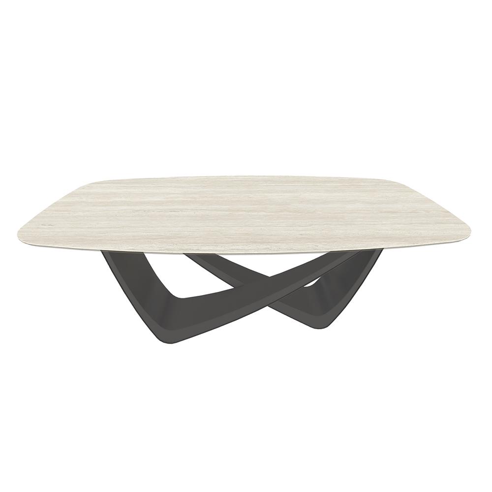BONTEMPI table fixe tonneau avec structure anthracite BACH 53.75 200x116 cm (SuperMarmo Travertino bianco pietra opaco - Struttura in acciaio laccato antracite e piano in ceramica e cristallo)