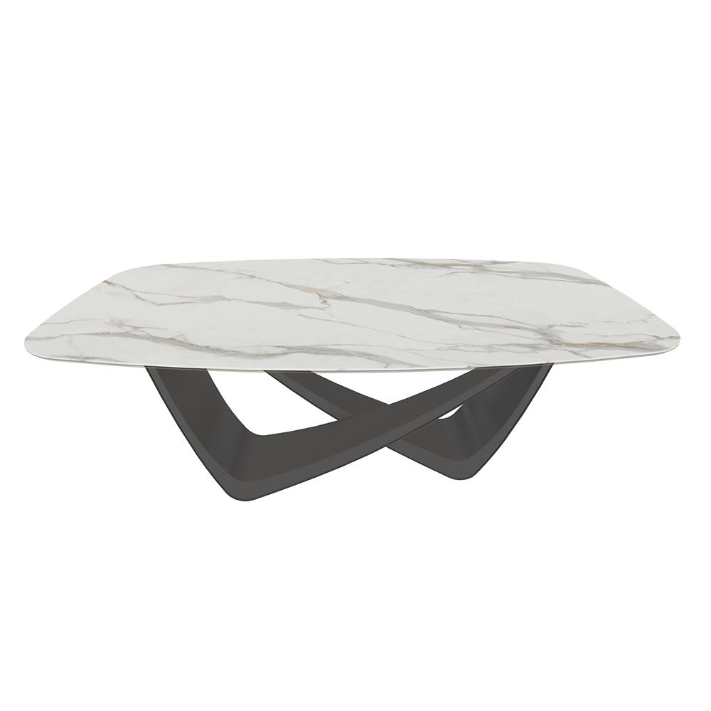 BONTEMPI table fixe tonneau avec structure anthracite BACH 53.75 200x116 cm (SuperMarmo Calacatta Supreme opaco - Struttura in acciaio laccato antracite e piano in ceramica e cristallo)