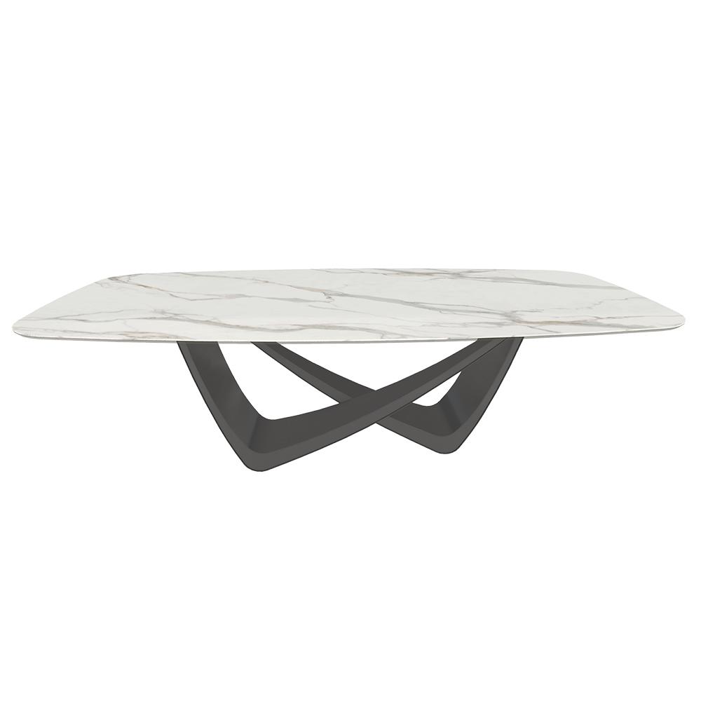 BONTEMPI table fixe tonneau avec structure anthracite BACH 53.92 220x116 cm (SuperMarmo Calacatta Supreme lucido - Struttura in acciaio laccato antracite e piano in ceramica e cristallo)