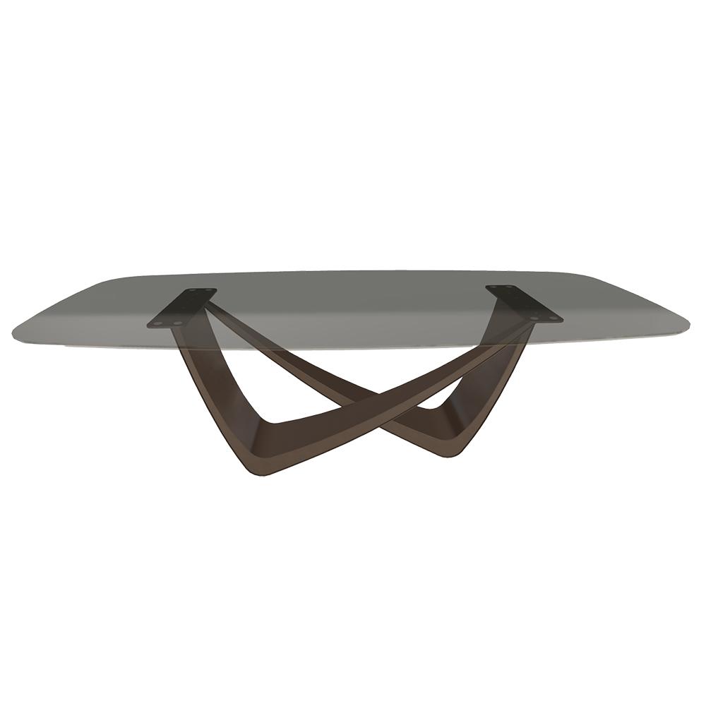 BONTEMPI table fixe tonneau avec structure laiton foncé BACH 53.76 250x120 cm (Trasparente bronzo - Struttura in acciaio laccato ottone scuro e piano in cristallo)