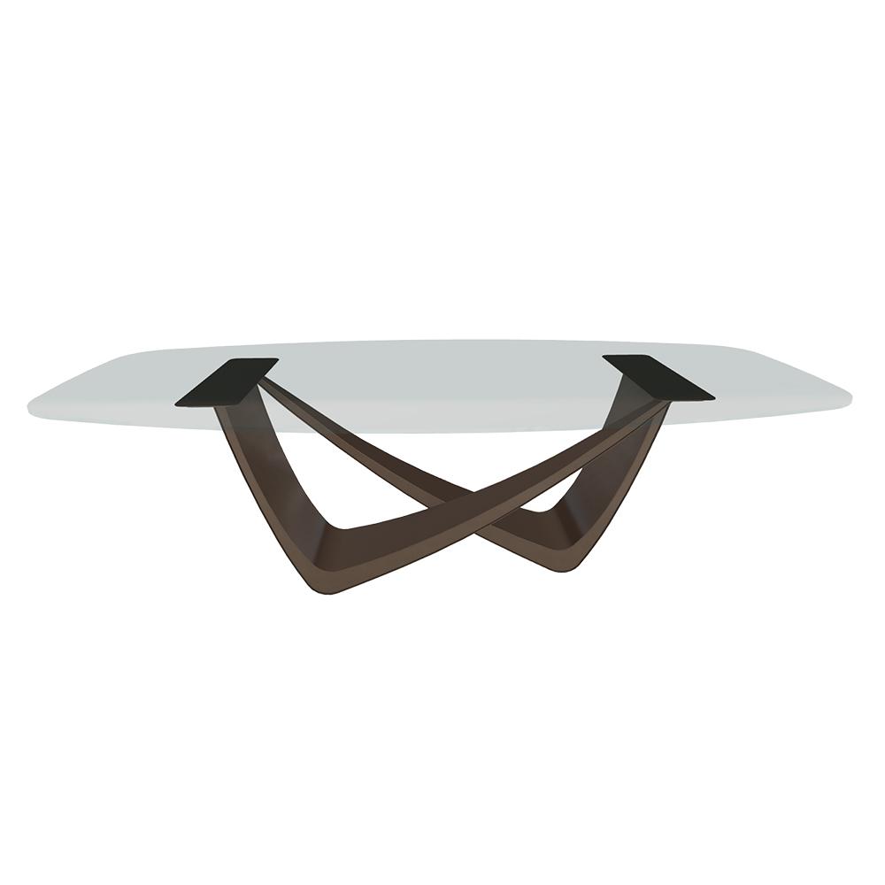 BONTEMPI table fixe tonneau avec structure laiton foncé BACH 53.92 220x116 cm (Transparent extra-clair - Struttura in acciaio laccato ottone scuro e piano in cristallo)