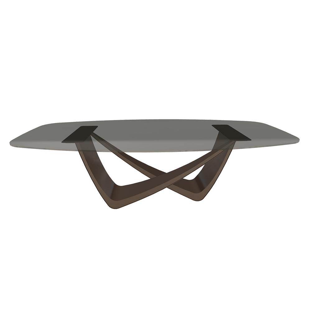 BONTEMPI table fixe tonneau avec structure laiton foncé BACH 53.92 220x116 cm (Trasparente bronzo - Struttura in acciaio laccato ottone scuro e piano in cristallo)