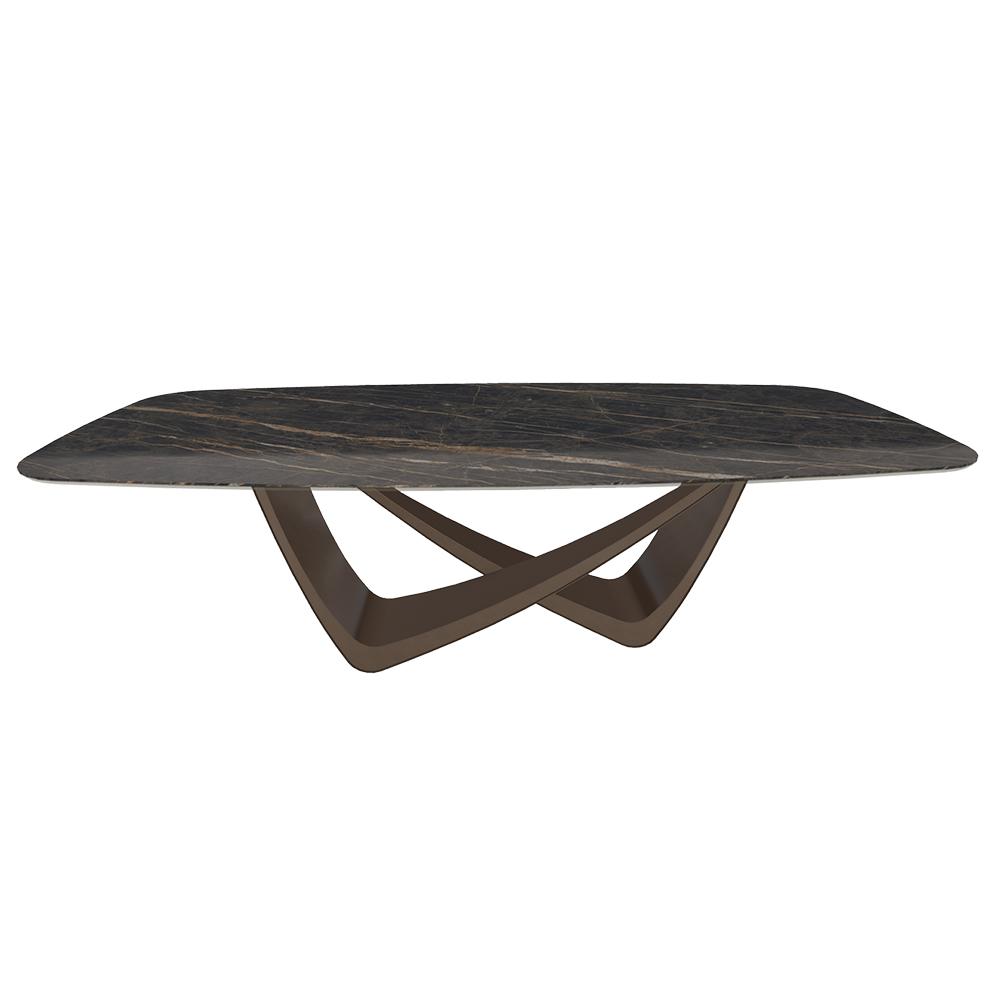 BONTEMPI table fixe tonneau avec structure laiton foncé BACH 53.92 220x116 cm (SuperMarmo Noir Desir lucido - Struttura in acciaio laccato ottone scuro e piano in ceramica e cristallo)