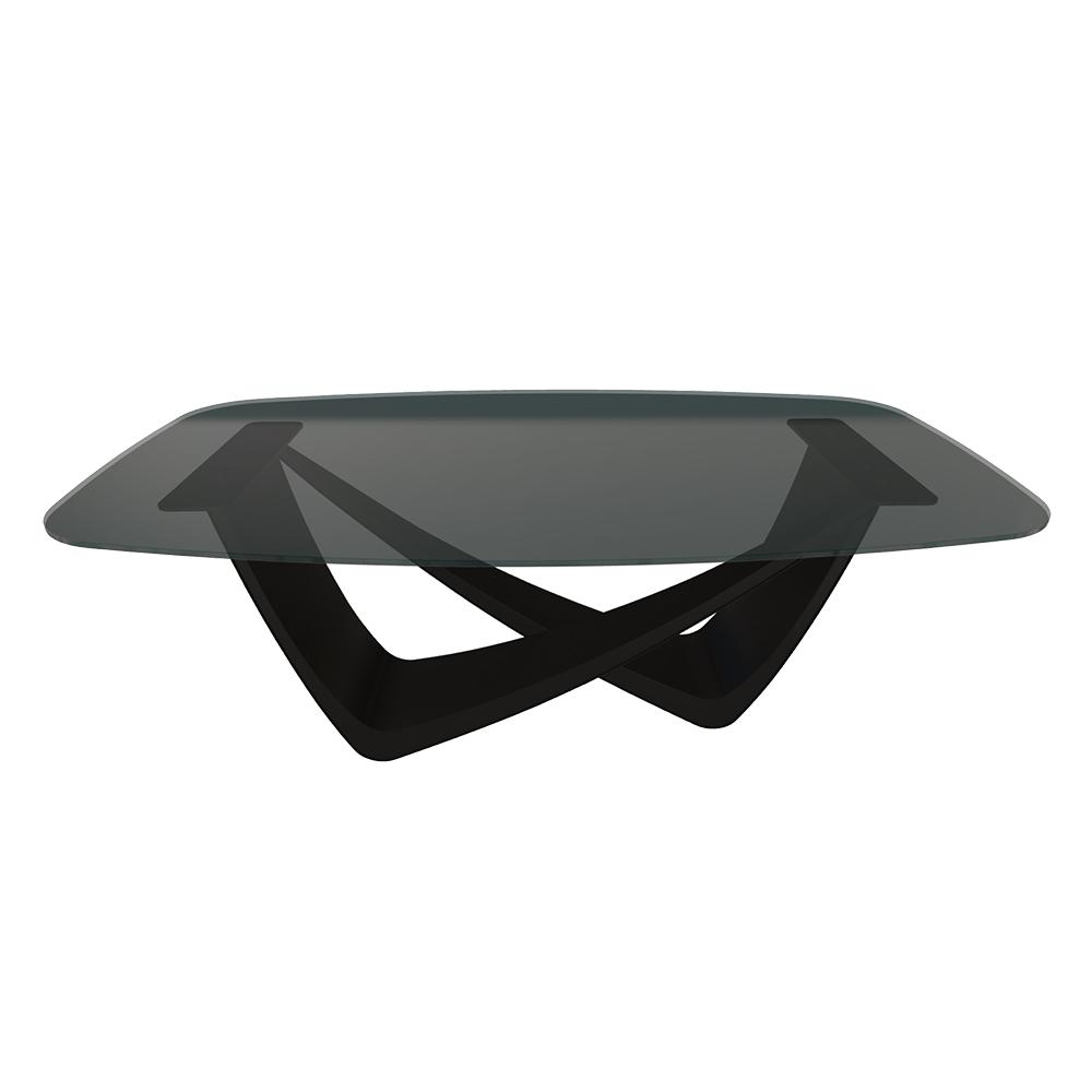 BONTEMPI table fixe tonneau avec structure noire matte BACH 53.75 200x116 cm (Transparent fumé - Struttura in acciaio laccato nero opaco e piano in cristallo)