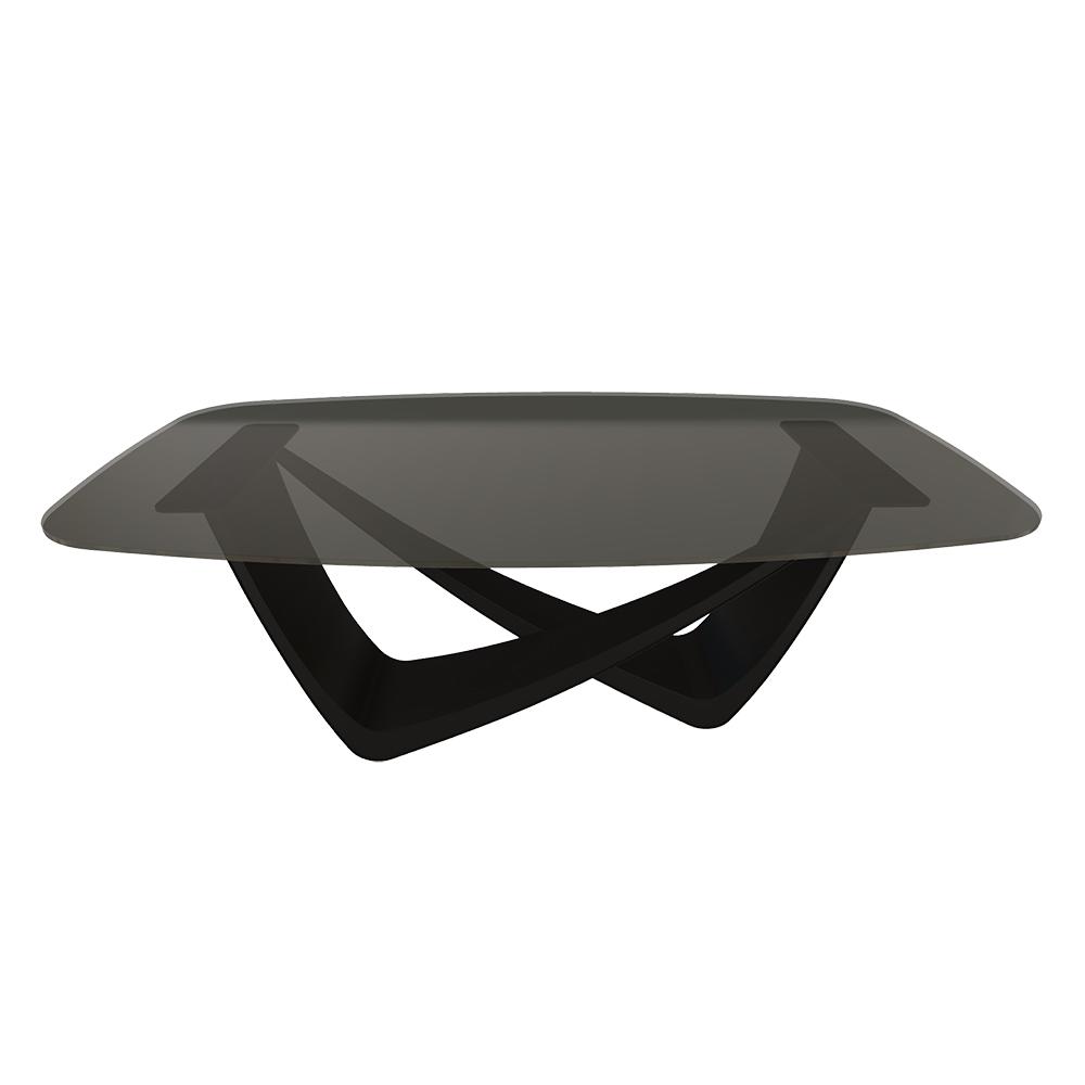 BONTEMPI table fixe tonneau avec structure noire matte BACH 53.75 200x116 cm (Trasparente bronzo - Struttura in acciaio laccato nero opaco e piano in cristallo)