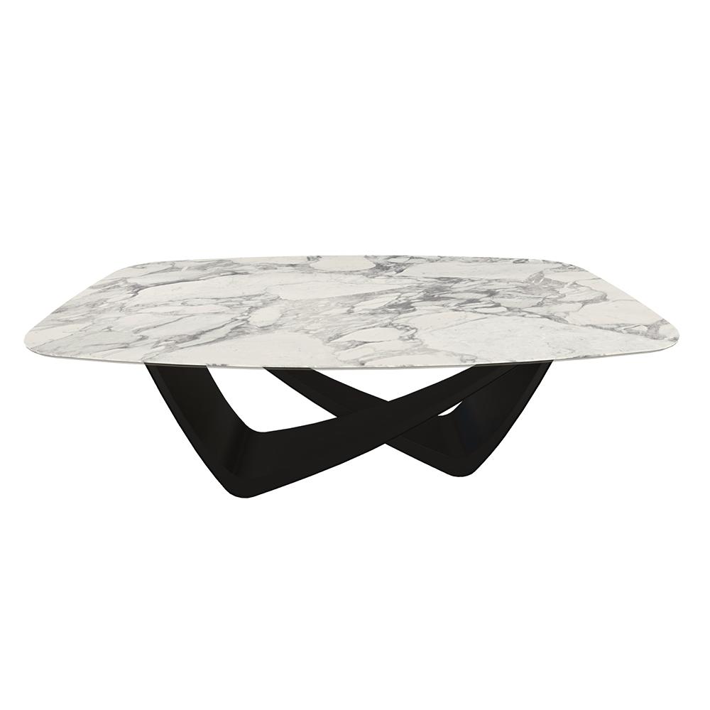 BONTEMPI table fixe tonneau avec structure noire matte BACH 53.75 200x116 cm (SuperMarmo Arabescato lucido lucido - Struttura in acciaio laccato nero opaco e piano in ceramica e cristallo)