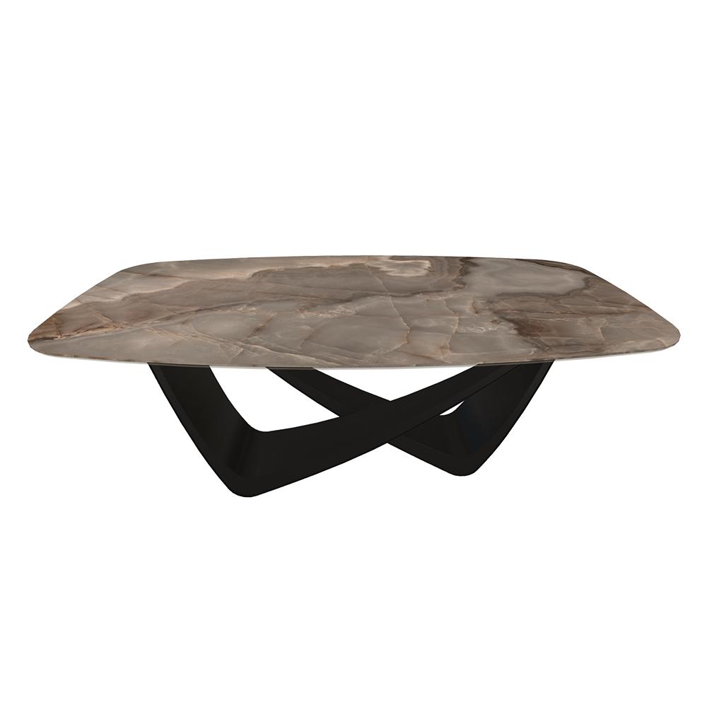 BONTEMPI table fixe tonneau avec structure noire matte BACH 53.75 200x116 cm (SuperMarmo Choco lucido - Struttura in acciaio laccato nero opaco e piano in ceramica e cristallo)