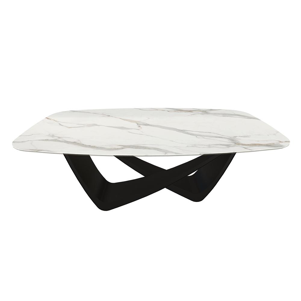 BONTEMPI table fixe tonneau avec structure noire matte BACH 53.75 200x116 cm (SuperMarmo Calacatta Supreme lucido - Struttura in acciaio laccato nero opaco e piano in ceramica e cristallo)