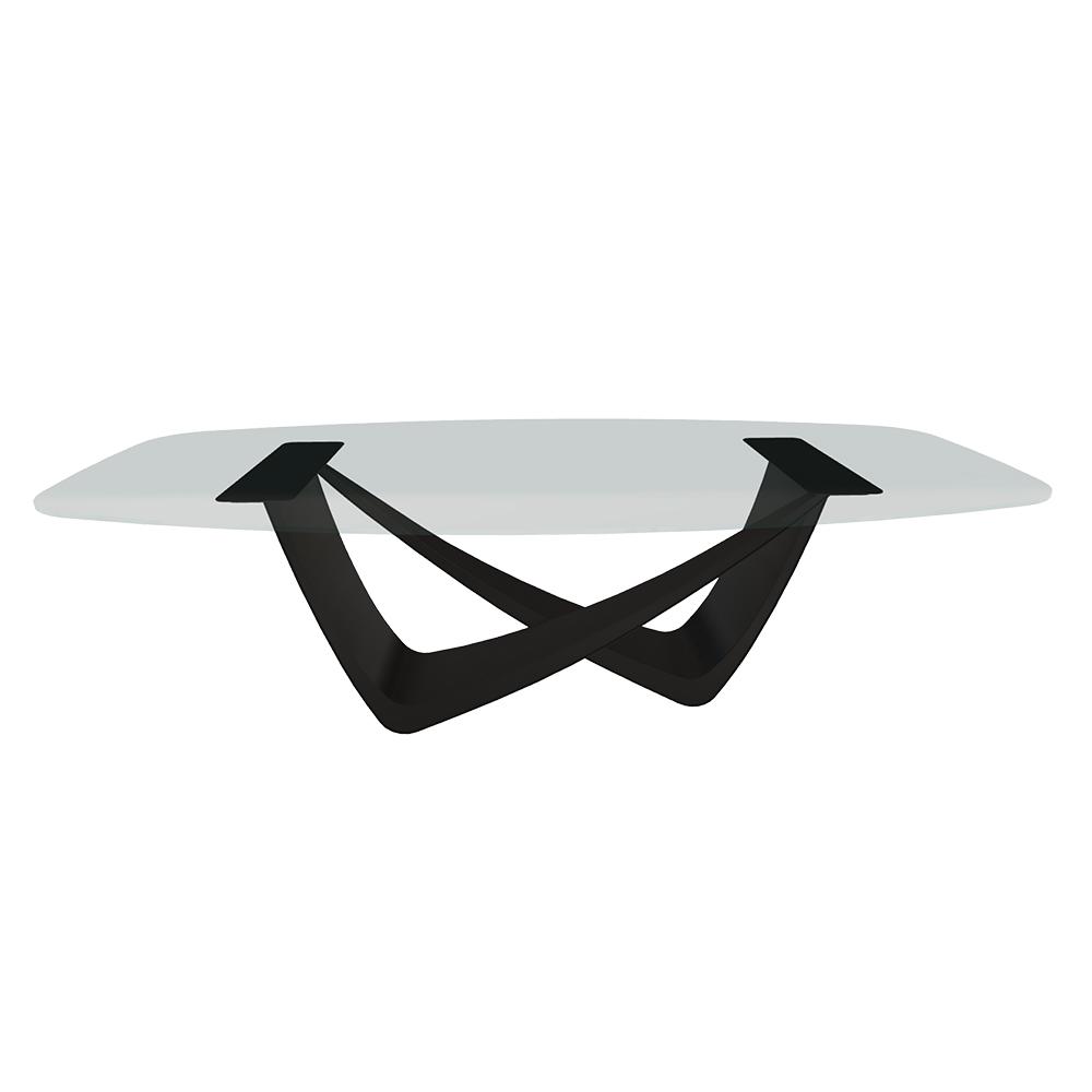 BONTEMPI table fixe tonneau avec structure noire matte BACH 53.92 220x116 cm (Transparent extra-clair - Structure en acier laqué noir mat et plateau en verre)