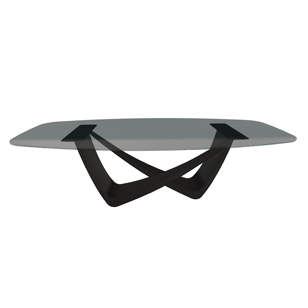 BONTEMPI table fixe tonneau avec structure noire matte BACH 53.92 220x116 cm (Transparent fumé - Structure en acier laqué noir mat et plateau en verre)