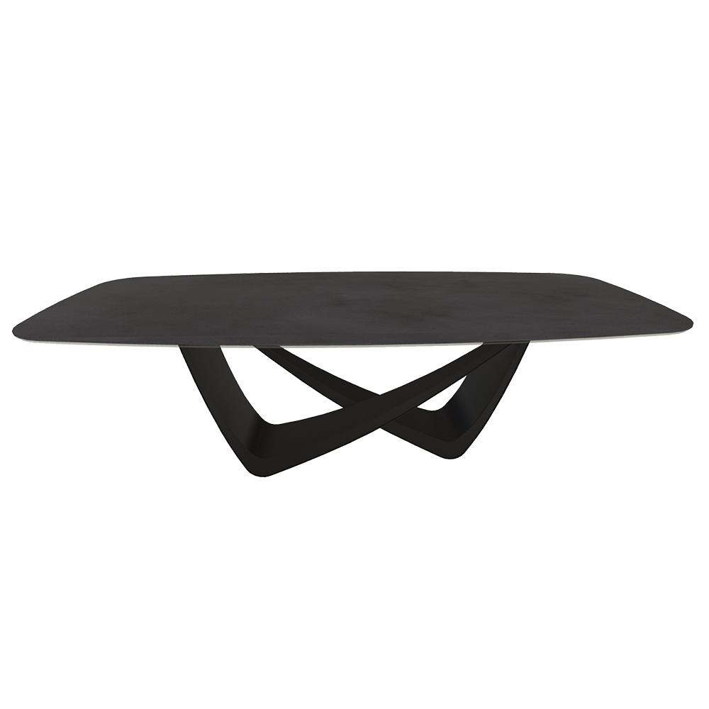 BONTEMPI table fixe tonneau avec structure noire matte BACH 53.92 220x116 cm (SuperCeramique Anthracite - Structure en acier laqué noir mat et plateau en céramique et cristal)
