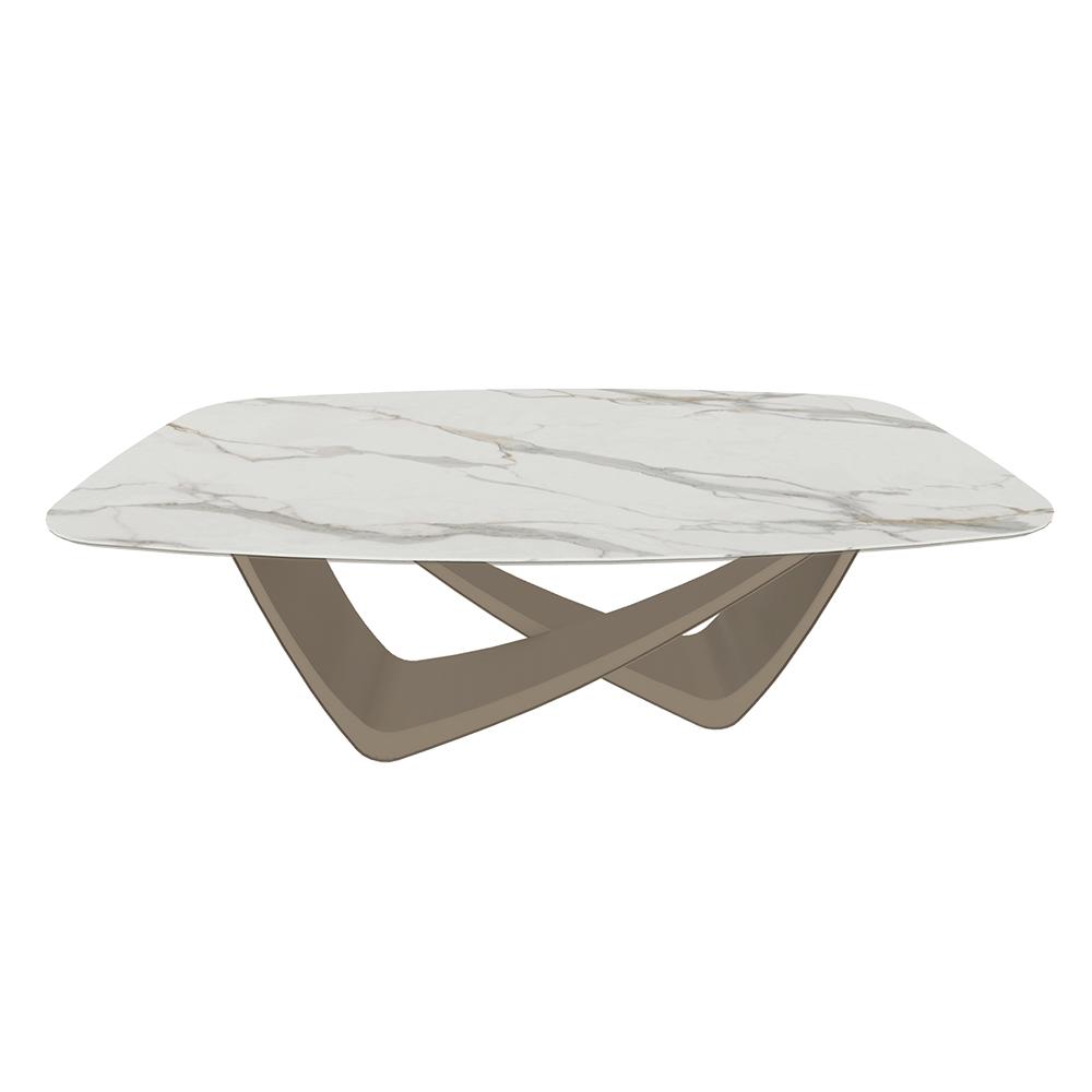 BONTEMPI table fixe tonneau avec structure sable BACH 53.75 200x116 cm (SuperMarmo Calacatta Supreme opaco - Struttura in acciaio laccato sabbia e piano in ceramica e cristallo)