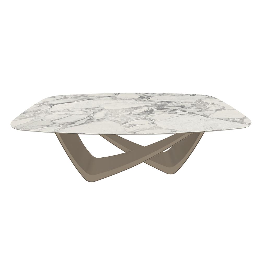 BONTEMPI table fixe tonneau avec structure sable BACH 53.75 200x116 cm (SuperMarmo Arabescato lucido lucido - Struttura in acciaio laccato sabbia e piano in ceramica e cristallo)