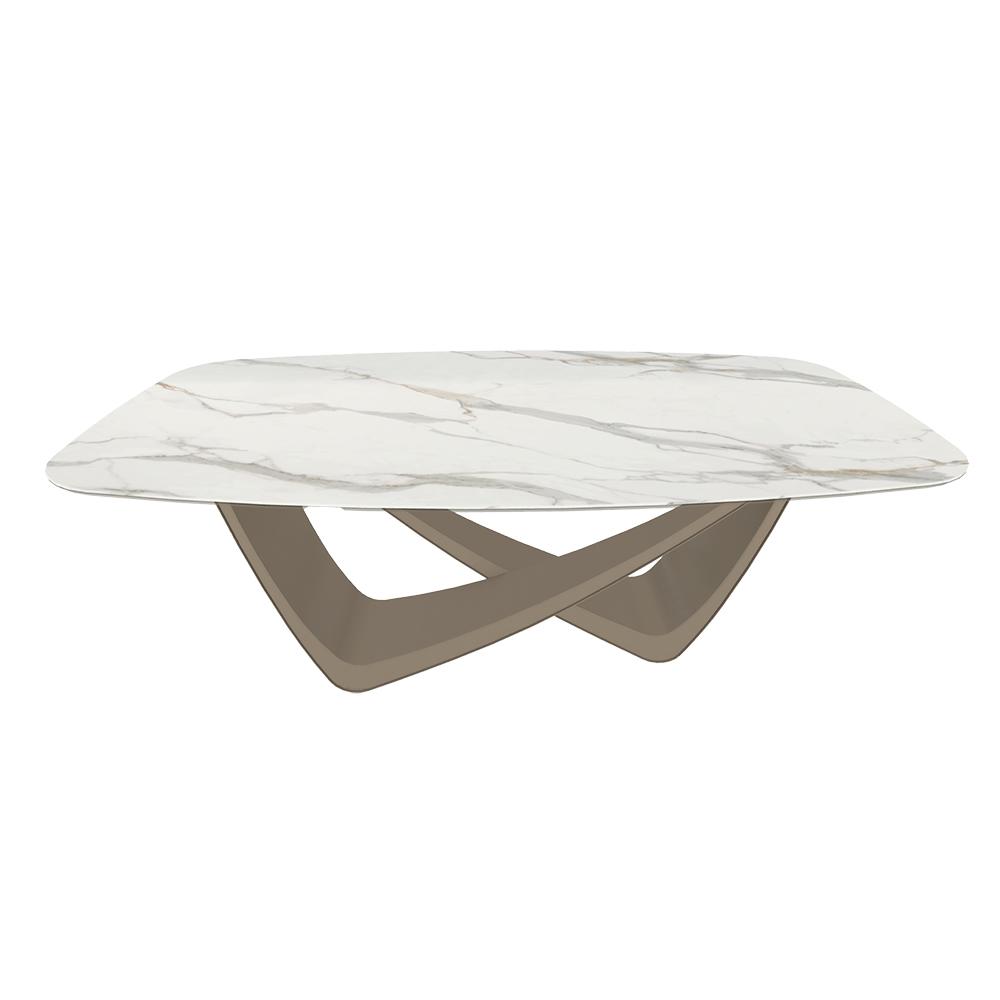 BONTEMPI table fixe tonneau avec structure sable BACH 53.75 200x116 cm (SuperMarmo Calacatta Supreme lucido - Struttura in acciaio laccato sabbia e piano in ceramica e cristallo)
