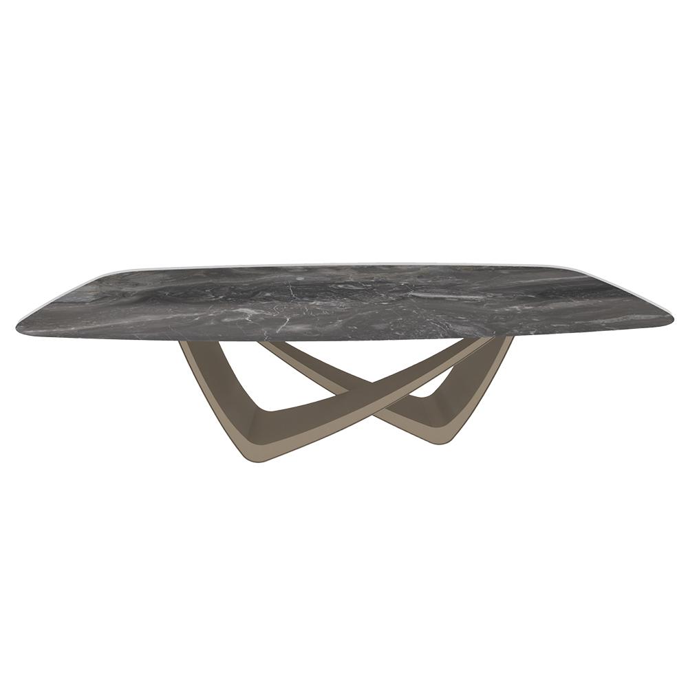BONTEMPI table fixe tonneau avec structure sable BACH 53.76 250x120 cm (Art Glass Arabescato Imperiale Orobico - Struttura in acciaio laccato sabbia e piano in cristallo temprato)