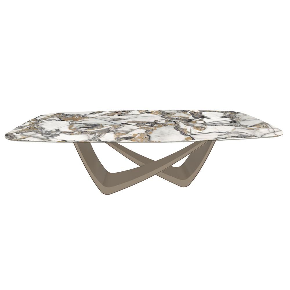 BONTEMPI table fixe tonneau avec structure sable BACH 53.76 250x120 cm (SuperMarmo Étoile Gold lucido - Struttura in acciaio laccato sabbia e piano in ceramica e cristallo)
