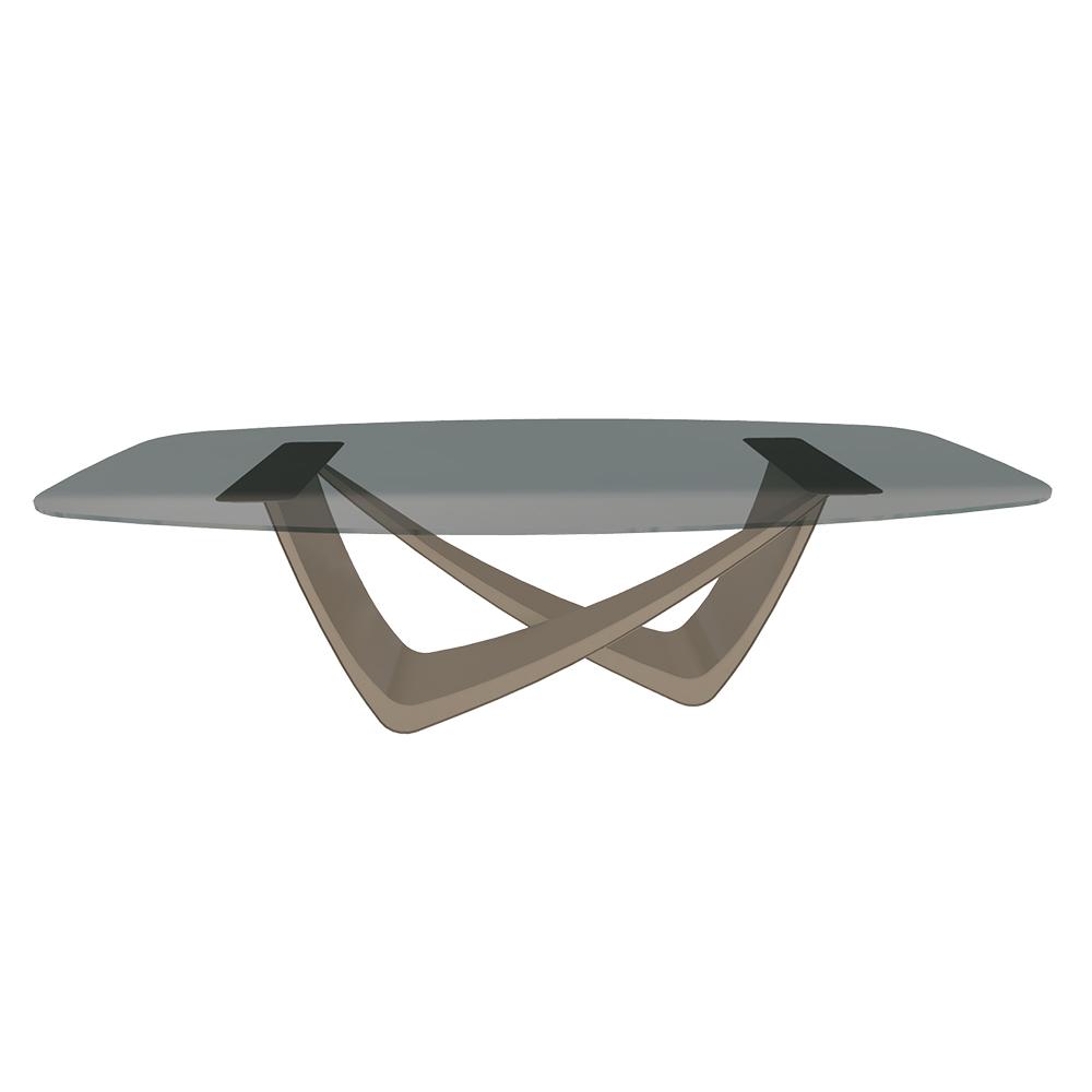 BONTEMPI table fixe tonneau avec structure sable BACH 53.92 220x116 cm (Transparent fumé - Struttura in acciaio laccato sabbia e piano in cristallo)