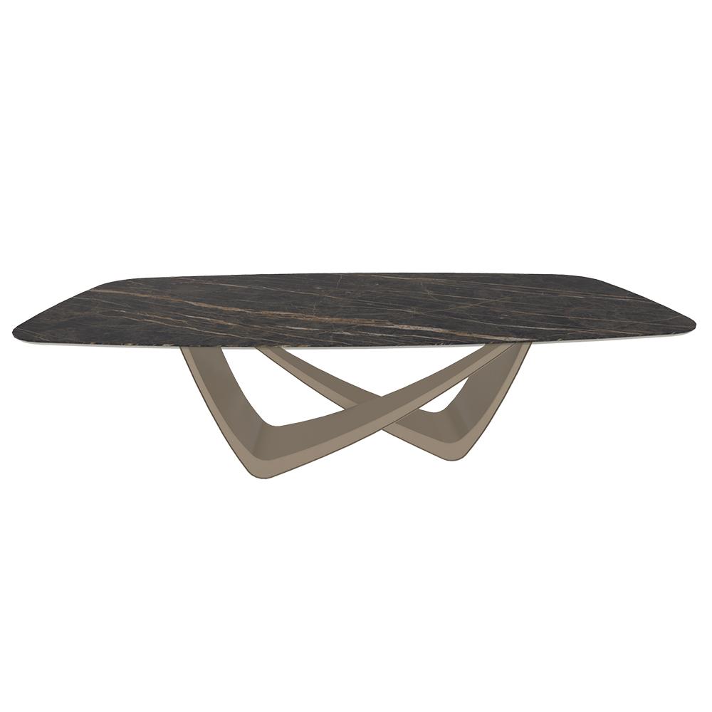 BONTEMPI table fixe tonneau avec structure sable BACH 53.92 220x116 cm (SuperMarble Noir Désir opaque - Structure en acier laqué sablé et plateau en céramique et verre)