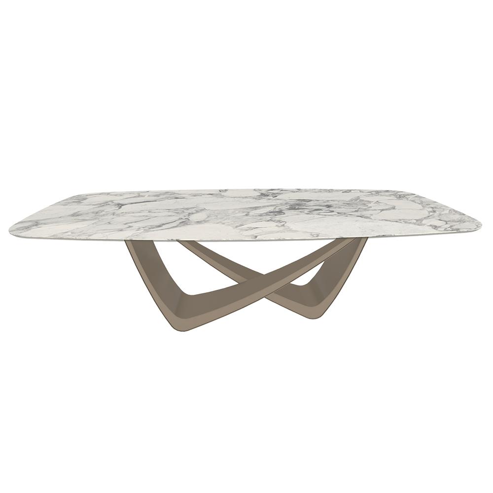 BONTEMPI table fixe tonneau avec structure sable BACH 53.92 220x116 cm (SuperMarmo Arabescato lucido lucido - Struttura in acciaio laccato sabbia e piano in ceramica e cristallo)