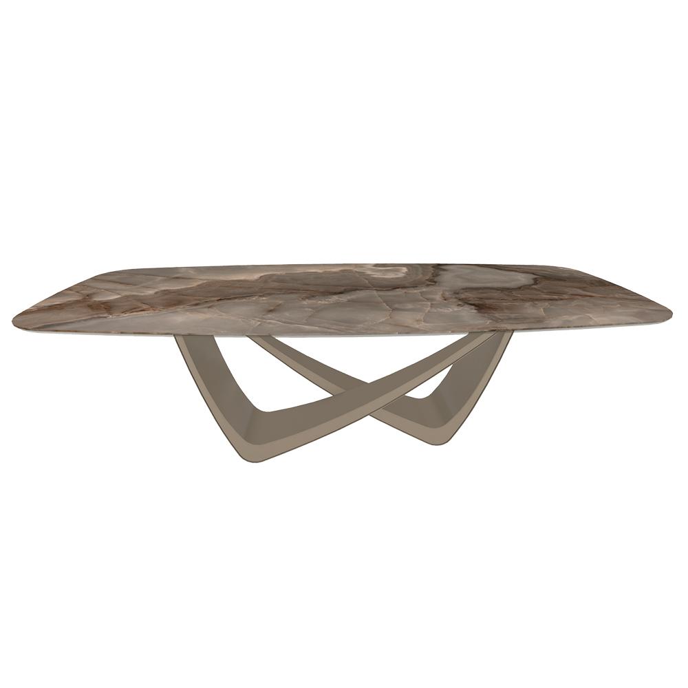 BONTEMPI table fixe tonneau avec structure sable BACH 53.92 220x116 cm (SuperMarble Choco brillant - Structure en acier laqué sablé et plateau en céramique et verre)
