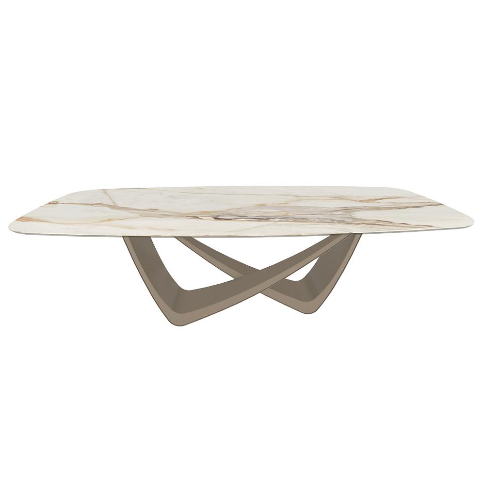 BONTEMPI table fixe tonneau avec structure sable BACH 53.92 220x116 cm (SuperMarmo Amber whisper lucido - Struttura in acciaio laccato sabbia e piano in ceramica e cristallo)