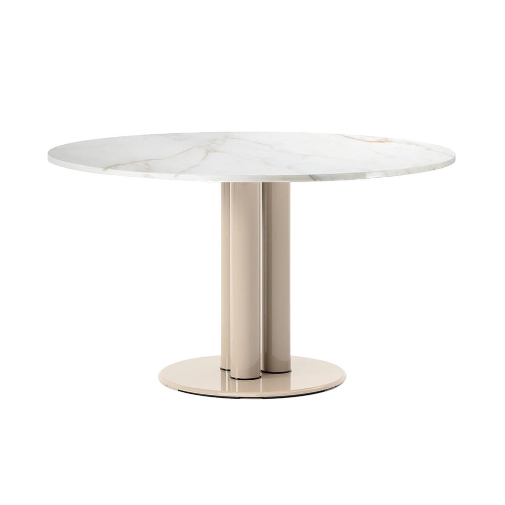 ZANOTTA table ronde MARCUSO 2531 Ø 130 cm (Talc - Base e gambe in acciaio verniciato lucido, piano in marmo Calacatta)