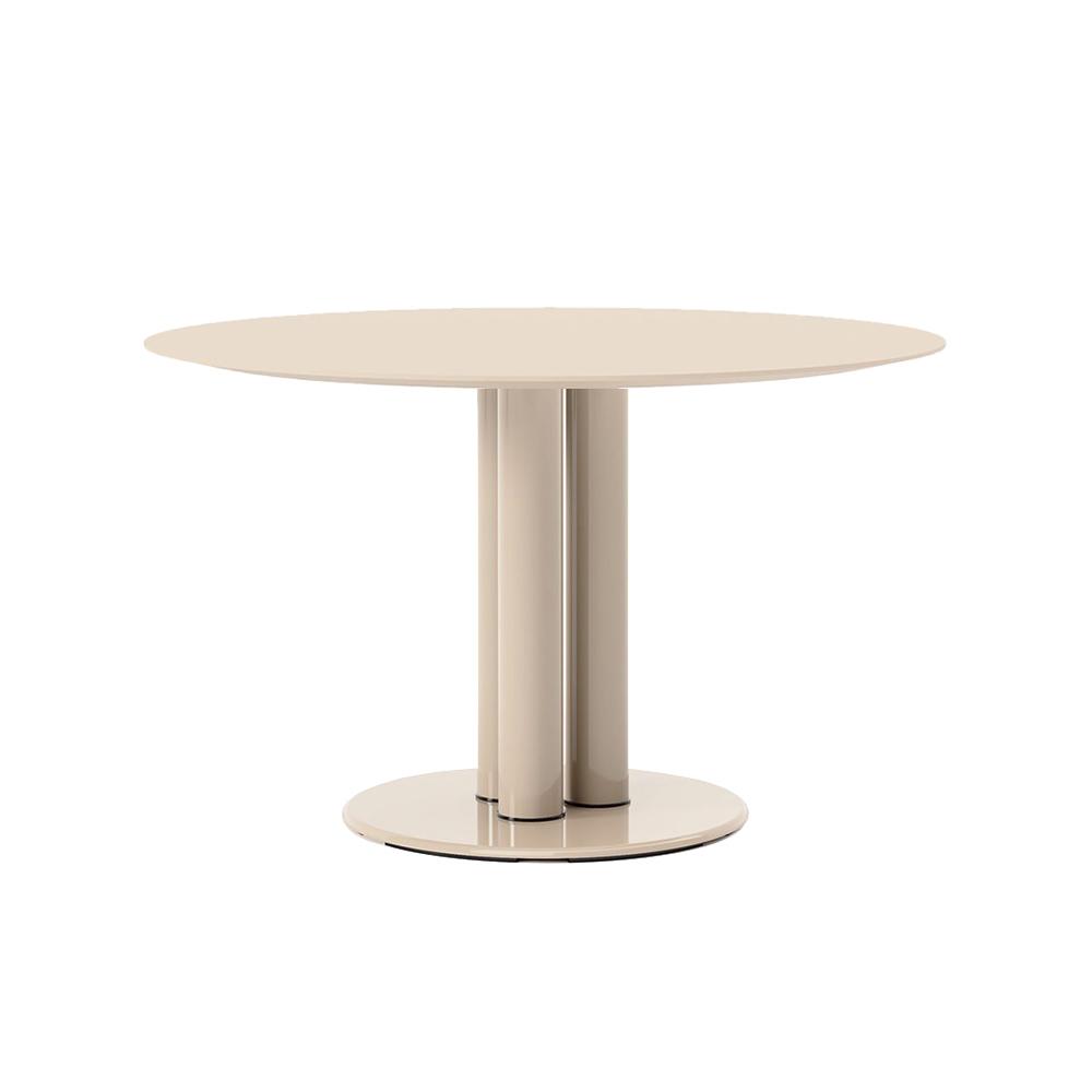 ZANOTTA table ronde MARCUSO 2533 Ø 120 cm (Talco, piano opaco - Base e gambe in acciaio verniciato lucido, piano in MDF laccato)