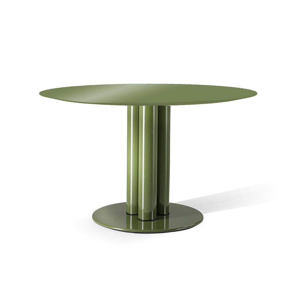 ZANOTTA table ronde MARCUSO 2533 Ø 120 cm (Alga, piano opaco - Base e gambe in acciaio verniciato lucido, piano in MDF laccato)