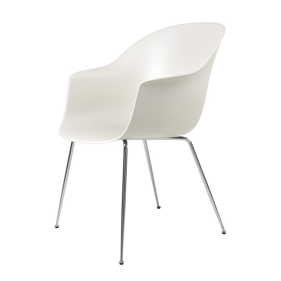 GUBI chaise avec accoudoirs BAT DINING CHAIR avec la base chrome (Alabaster white - polypropylène et acier)