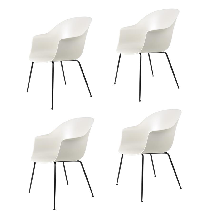 GUBI set de 4 chaises avec accoudoirs BAT DINING CHAIR base noire (Alabaster white - polypropylène et acier)