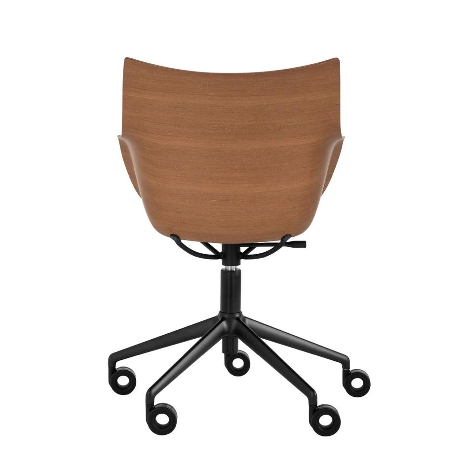 KARTELL chaise avec accoudoirs à roulettes Q/WOOD tissu Aquaclean (Foncé, coussin noir et piètement noir - Bois plaqué, tissu et acier)