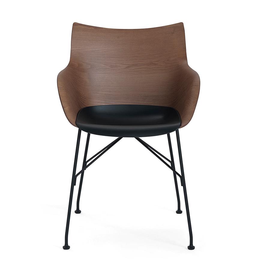 KARTELL chaise avec accoudoirs Q/WOOD (Foncé, base noire - frêne, polymère renforcé thermoplastique et acier)