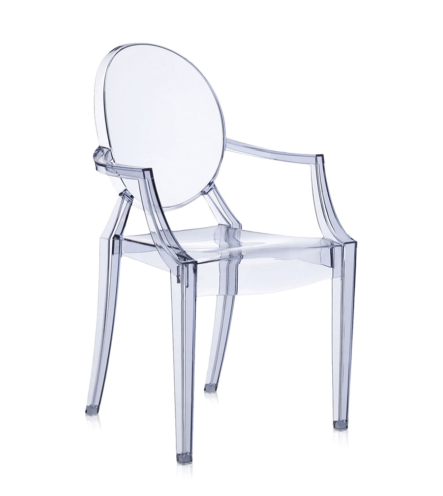 Louis Ghost Kartell est un petit fauteuil confortable en polycarbonate transparent et coloré, du design Louis XV : l’archétype du baroque de Louis Ghost de Kartell est revisité pour étonner, émouvoir, fasciner. Louis Ghost est l’exemple le plus hardi au monde d’injection de polycarbonate en un seule moule. En dépit de son aspect évanescent et cristallin, Louis Ghost est stable, résistant aux chocs, aux griffures et aux agents atmosphériques, empilable jusqu’à six pièces. Un modèle extrêmement attrayant et esthétique qui s’intègre avec élégance et ironie dans tout type d’habitation ou d’espace collectif.