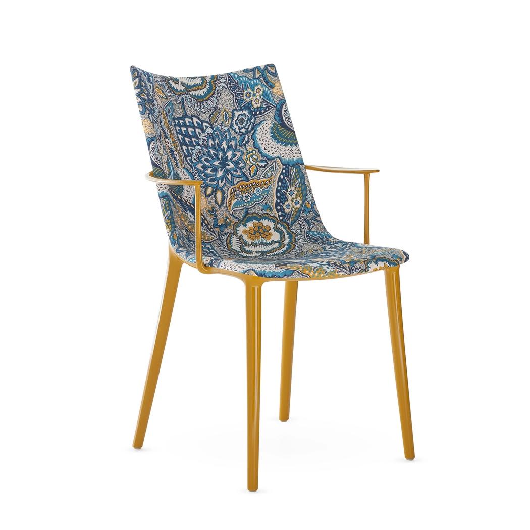 KARTELL fauteuil H.H.H. HER HIGHEST HIGHNESS UPHOLSTERED FABRIC (Moutarde / Patricia Ink-Ochre - Polycarbonate 2.0 recyclé et tissu Liberty)