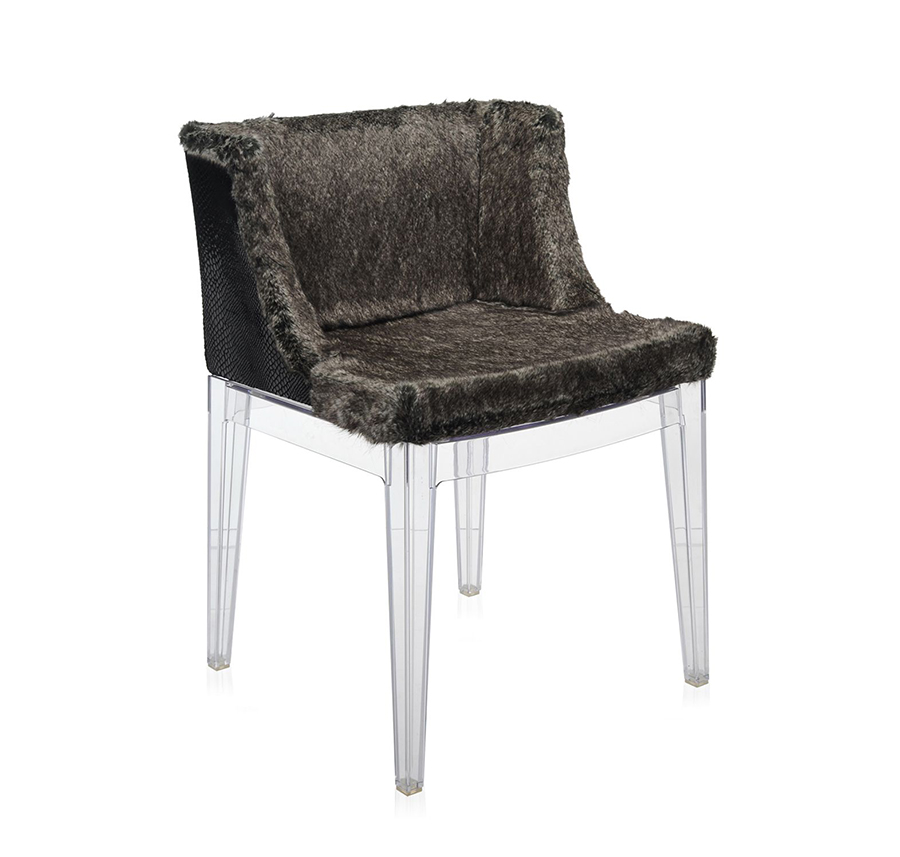 KARTELL fauteuil MADEMOISELLE KRAVITZ (Fur-python, structure transparente - Polycarbonate)