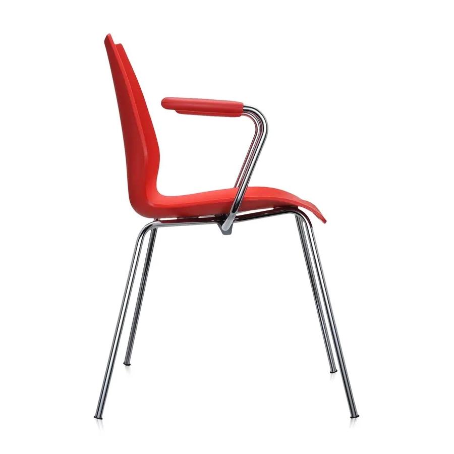 Les chaises Maui Kartell forment une famille riche en variétés de couleurs et de formes brutes et douces, à même de répondre aux exigences spécifiques des espaces collectifs ou privés. Grâce à sa conception, la chaise Maui est empilable et peut être fixée, à l'aide d'un simple crochet arrière sur demande, à d'autres chaises du même type, rangée par rangée, à l'infini.