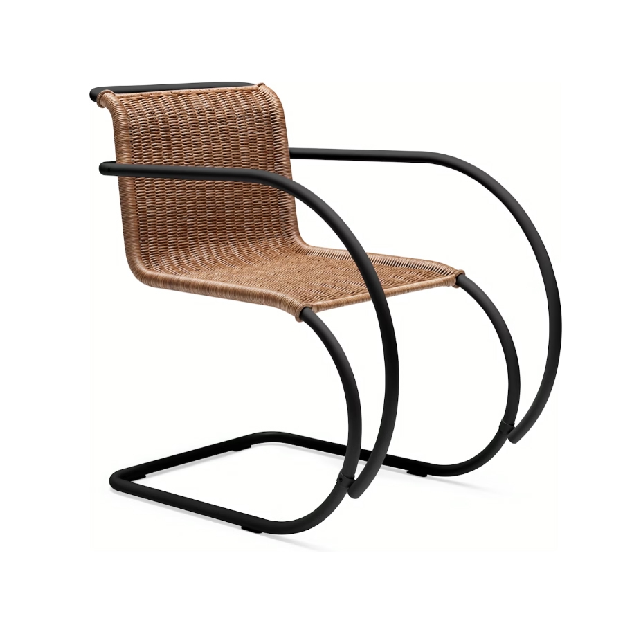 KNOLL chaise avec accoudoirs MR recouverte en Rotin (Struttura onyx - Midollino e acciaio verniciato opaco)