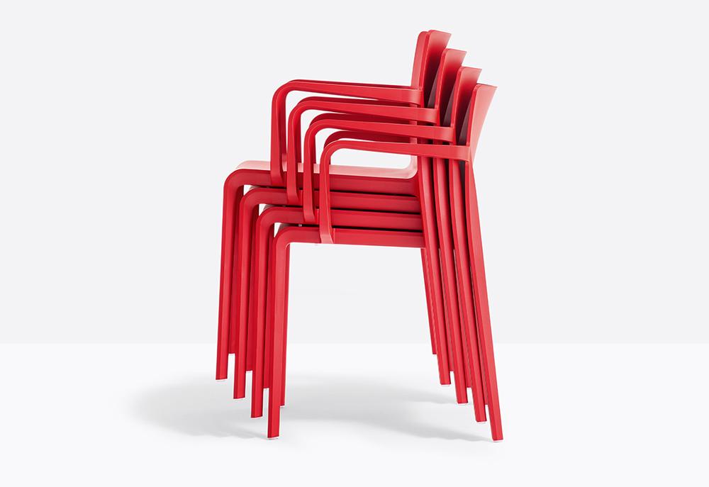 PEDRALI set de 4 chaises avec accoudoirs d'extérieur VOLT 675 (Rouge - Polypropylène)
