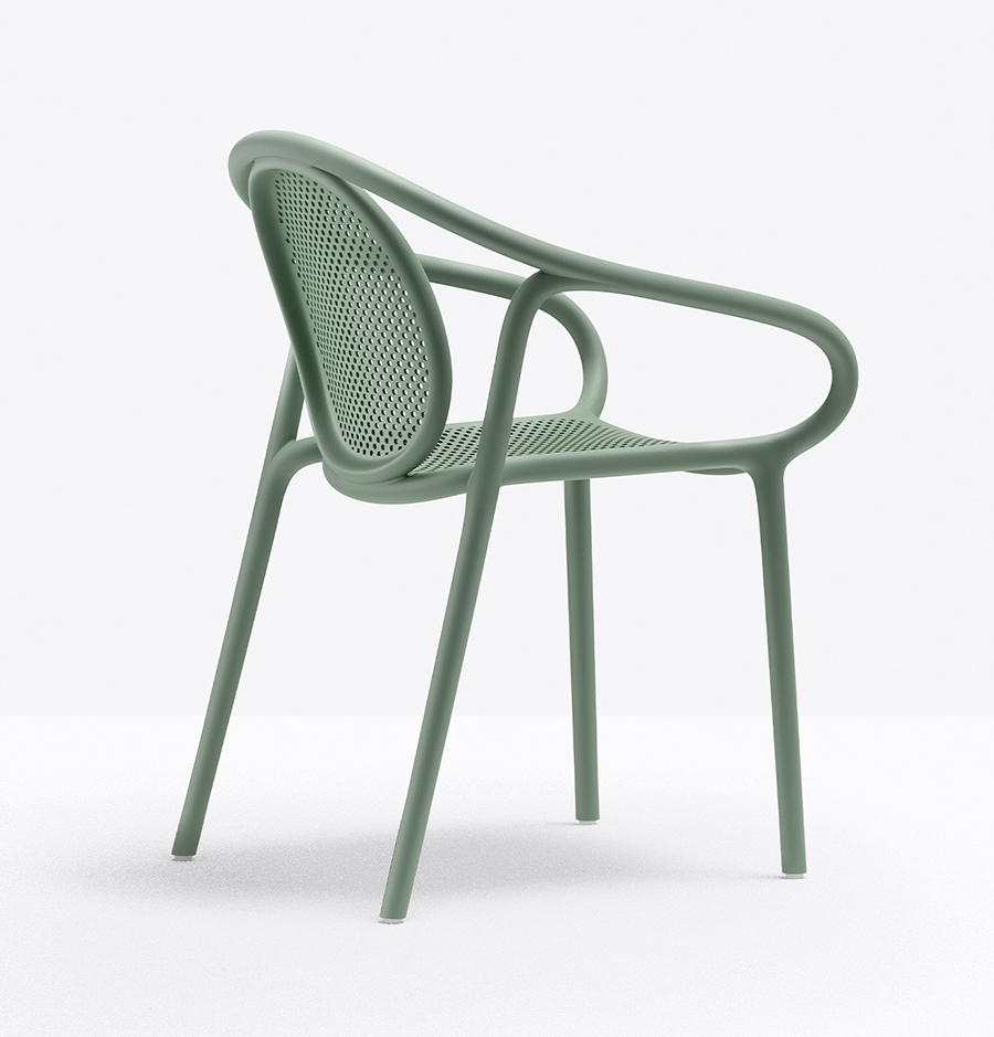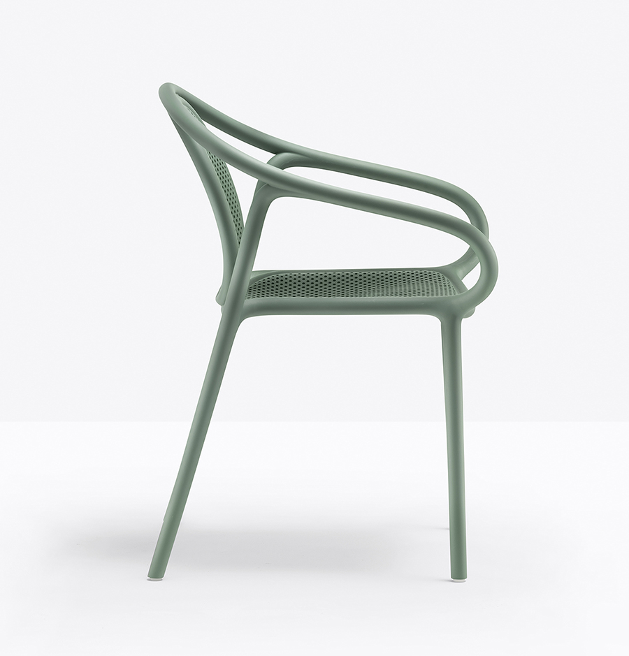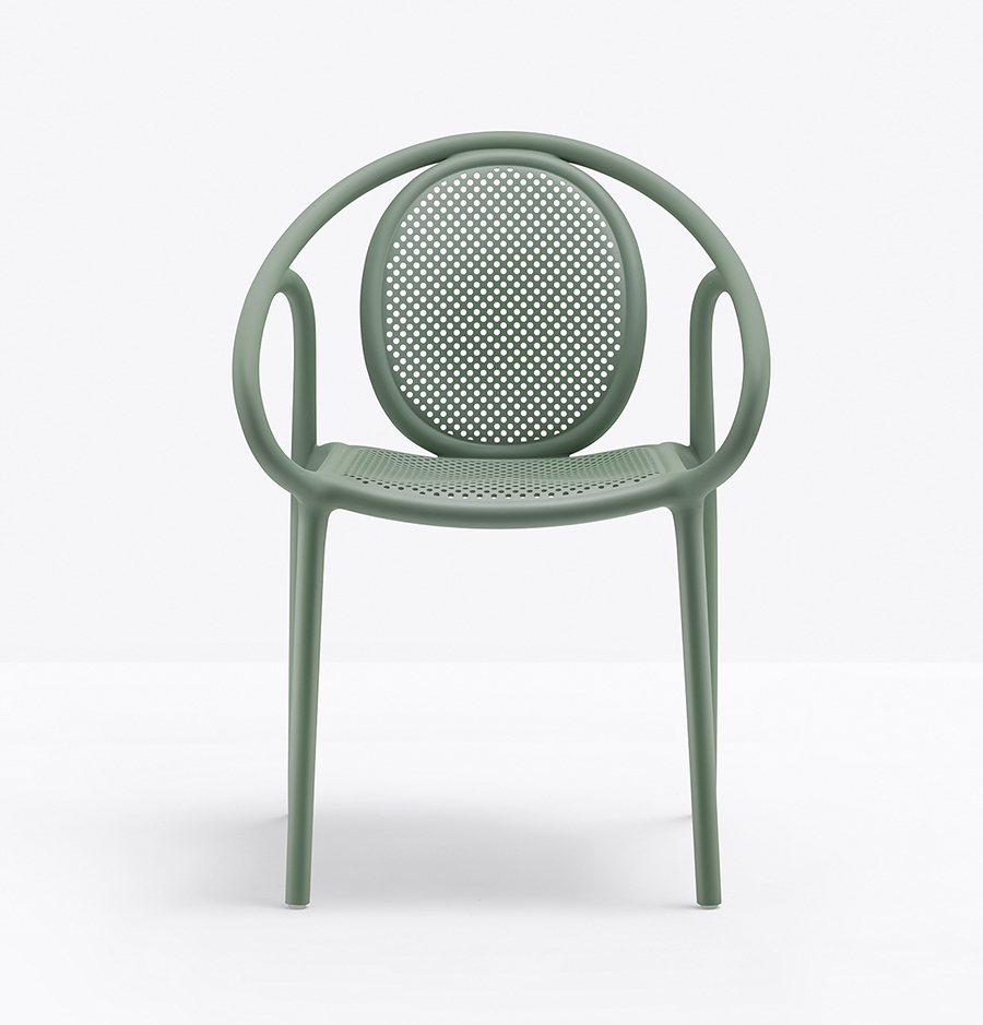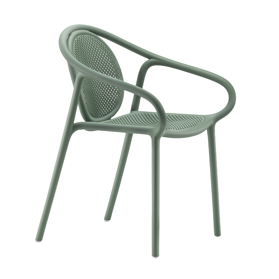 PEDRALI set de 4 chaises perforé avec accoudoirs REMIND (Vert sauge - Polypropylène avec fibre de verre)
