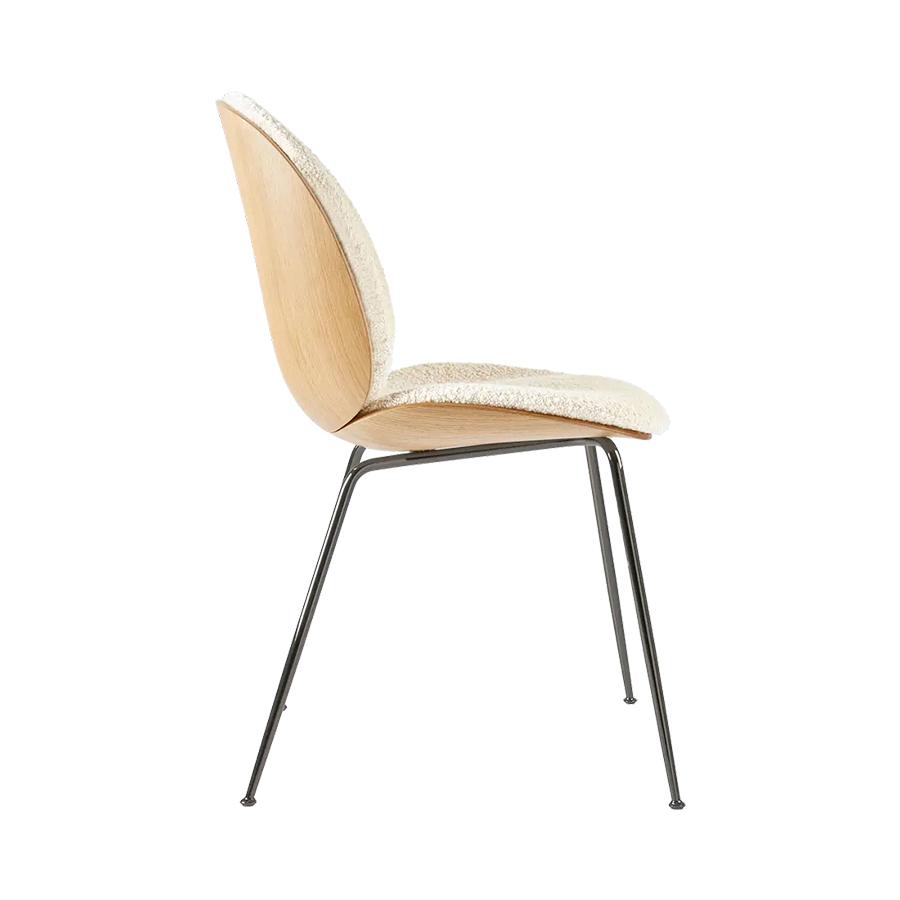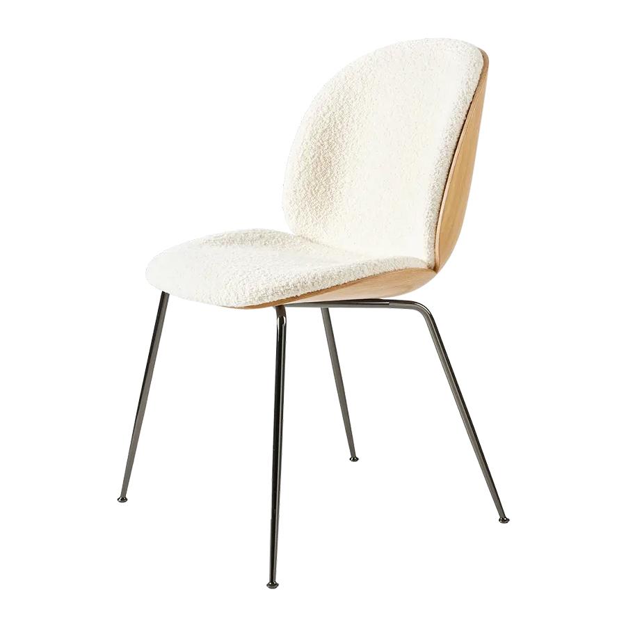 GUBI chaise rembourrée BEETLE 3D VENEER (Tissu Cat. B Glamour Group Mumble 40 - Coque en chêne, base en chrome noir)