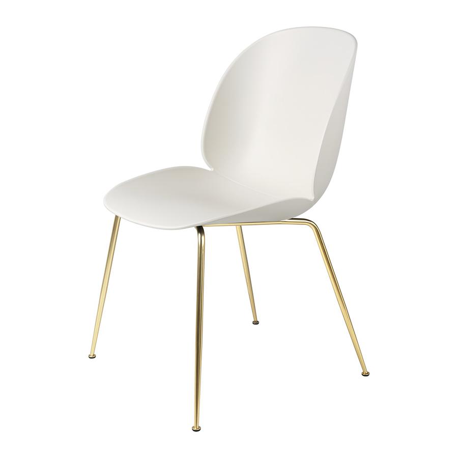 GUBI set de 4 chaises BEETLE DINING CHAIR base laiton (Alabaster white - polypropylène et acier)