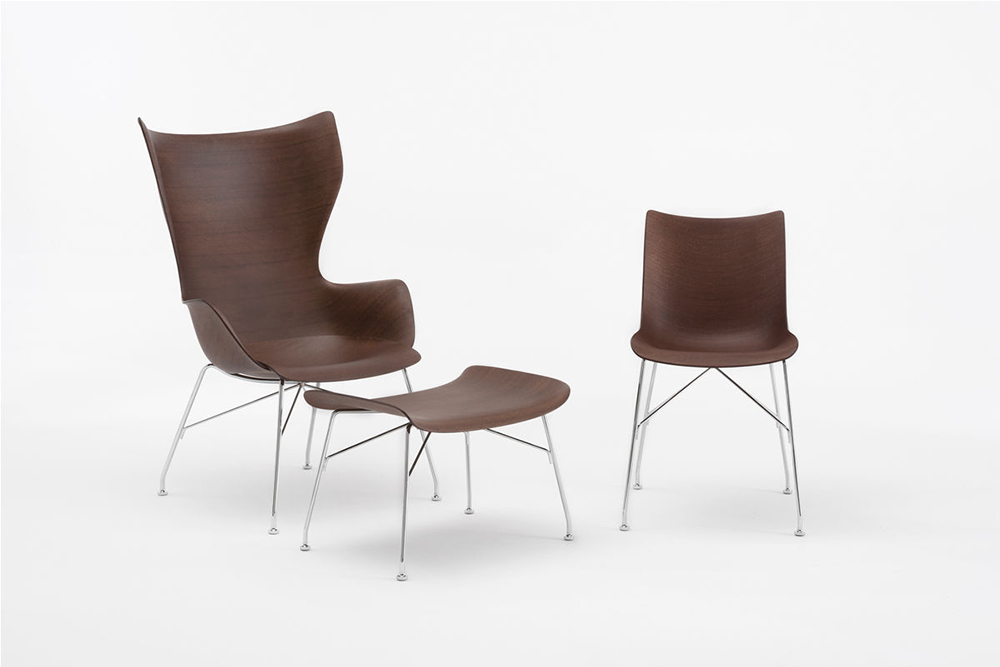 La collection Kartell Smart Wood naît de l'amour pour le design, pour le signe qui est le chiffre distinctif de l'objet, mais surtout il naît de la recheche continue de nouveau et innovation. L'idée créative développée par Philippe Starck part du choix d'un matériau comme le bois qui est le plus noble et le plus ancien, mais il est transformé par Kartell en un produit industriel. À travers un brevet spécial, en effet, le bois est travaillé par un moulage capable de porter à la limite la courbure du panneau et créer le châssis de l'assise avec rondeurs sinueuses. De cette façon la beauté du bois et sa capacité de connecter à la nature s'unissent à une extraordinaire ergonomie des lignes. En particulier, pour la première fois, Kartell a réussi à donner tridimensionnalité à un produit qui jusqu'à aujourd'hui a été bidimensionnel où même les parties latérales créent courbes accueillantes comme une embrassade, pour garantir le confort optimal.