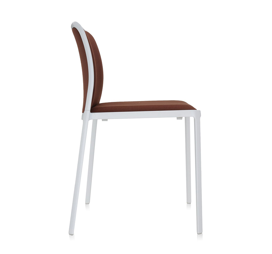 KARTELL set de 2 chaises AUDREY SOFT tissé TREVIRA (Structure peinte en blanc / Revêtement marron - aluminium / tissu Trevira)