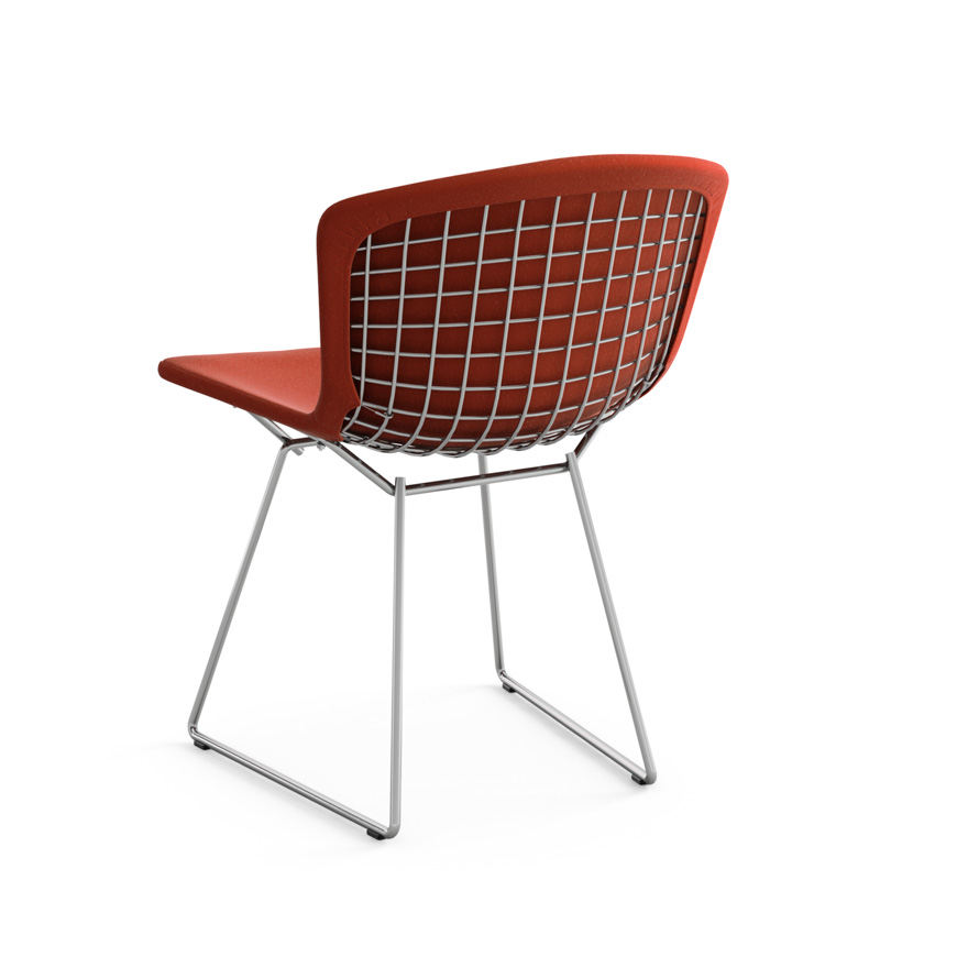 KNOLL chaise entièrement rembourrée BERTOIA (Structure chromée / Revêtement Poppy - Acier / Tissu Ultrasuede)
