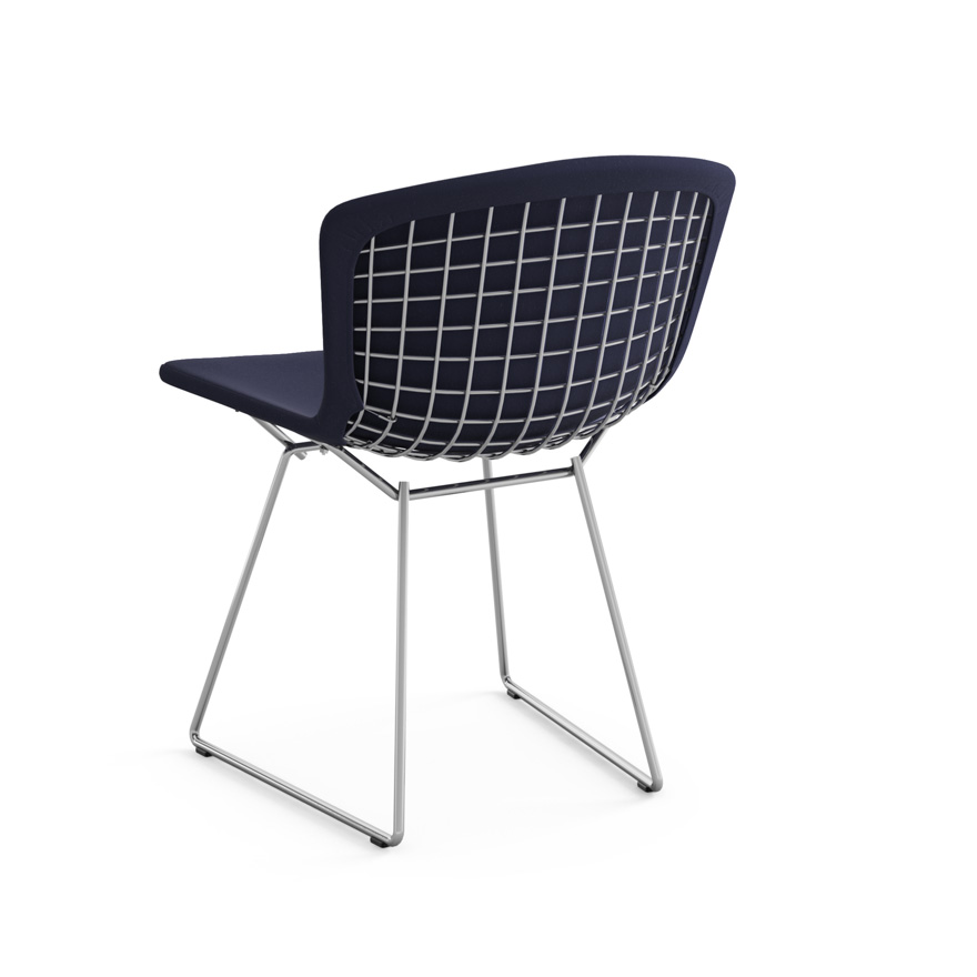 KNOLL chaise entièrement rembourrée BERTOIA (Structure chromée / Revêtement Midnight - Acier / Tissu Ultrasuede)