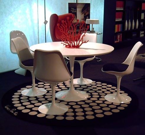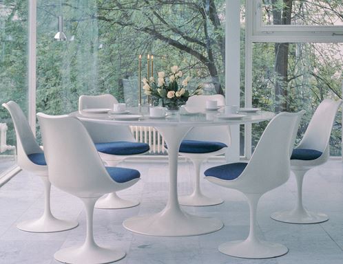 KNOLL chaise pivotant avec coussin TULIP. KNOLL swivel chair wirh cushion TULIP. La collection Tulipe d' Eero Saarinen comprend un fauteuil, une chaise, à base pivotante ou fixe et un tabouret à base pivotante.Les chaises sont disponibles avec coussin d'assise entièrement tapissé ou avec intérieur de la coquille entièrement tapissé et coussin d'assise. Le tabouret, uniquement avec coussin d'assise tapissé. Le logo KnollStudio et la signature de Eero Saarinen se trouvent sous le piètement. Base centrale en aluminium moulé, finition rilsan pour les versions blanche et noire. La base platine a un revêtement polyuréthane avec finition transparente. La coque est moulée, réalisée en fibre de verre de polyester renforcé.FinitionsLa coque et la base sont disponibles en noir, blanc ou platine.