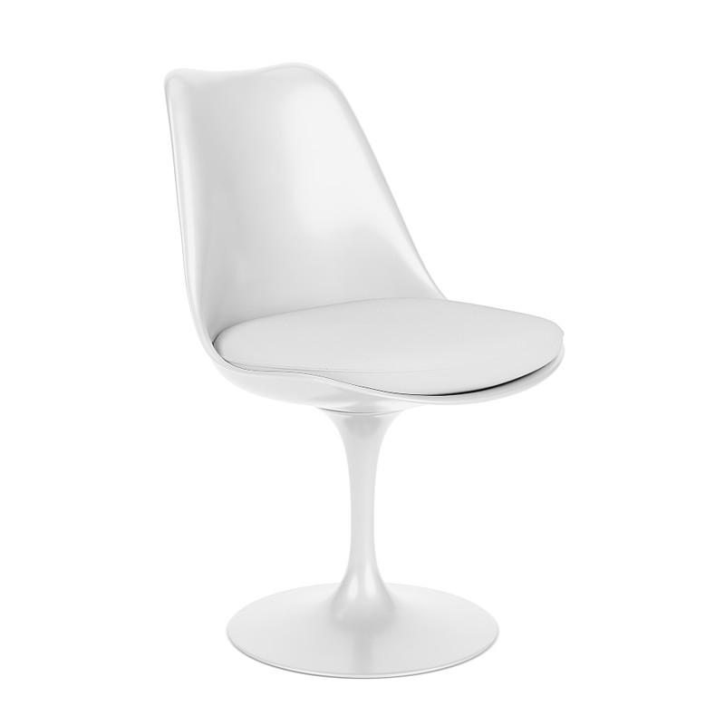 KNOLL chaise pivotante avec coussin TULIP (Coque et Pieds blancs / Coussin Cuir Blanc VO785 - Fiberglass renforcé / cuir)