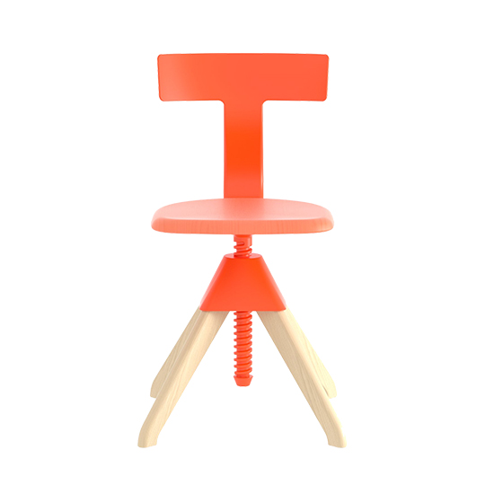MAGIS chaise pivotant réglable en hauteur TUFFY The Wild Bunch (Naturel/Orange - Bois massif de hêtre et polypropylène chargé de fibre de verre)