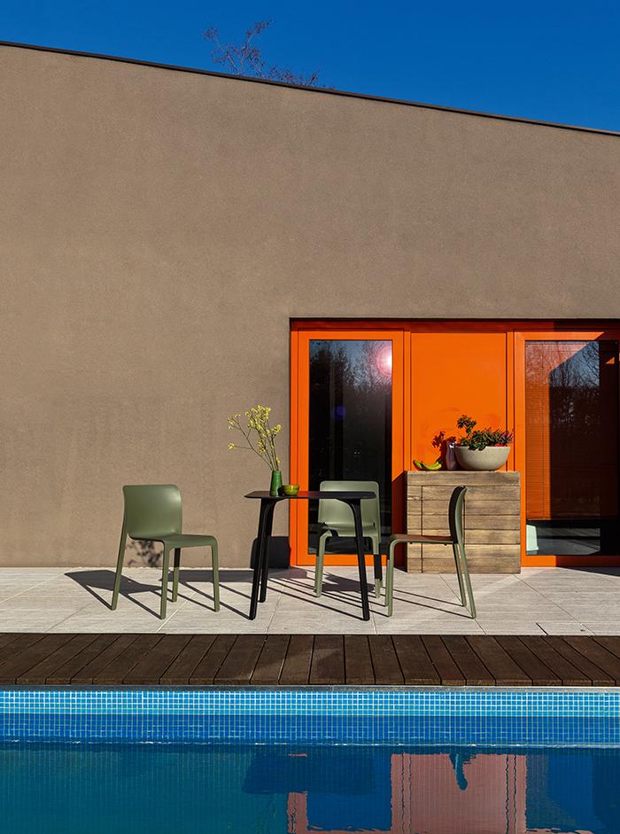 Chaises des lignes sobres et élégantes comme seul Stefano Giovannoni sait faire. Réalisée en polipropilene chargé avec fibre de verre pour en augmenter la résistance aux intempéries, en effet c'est une solution excellente pour extérieurs. Il est impilabile évidemment, donc ils peuvent remettre facilement.